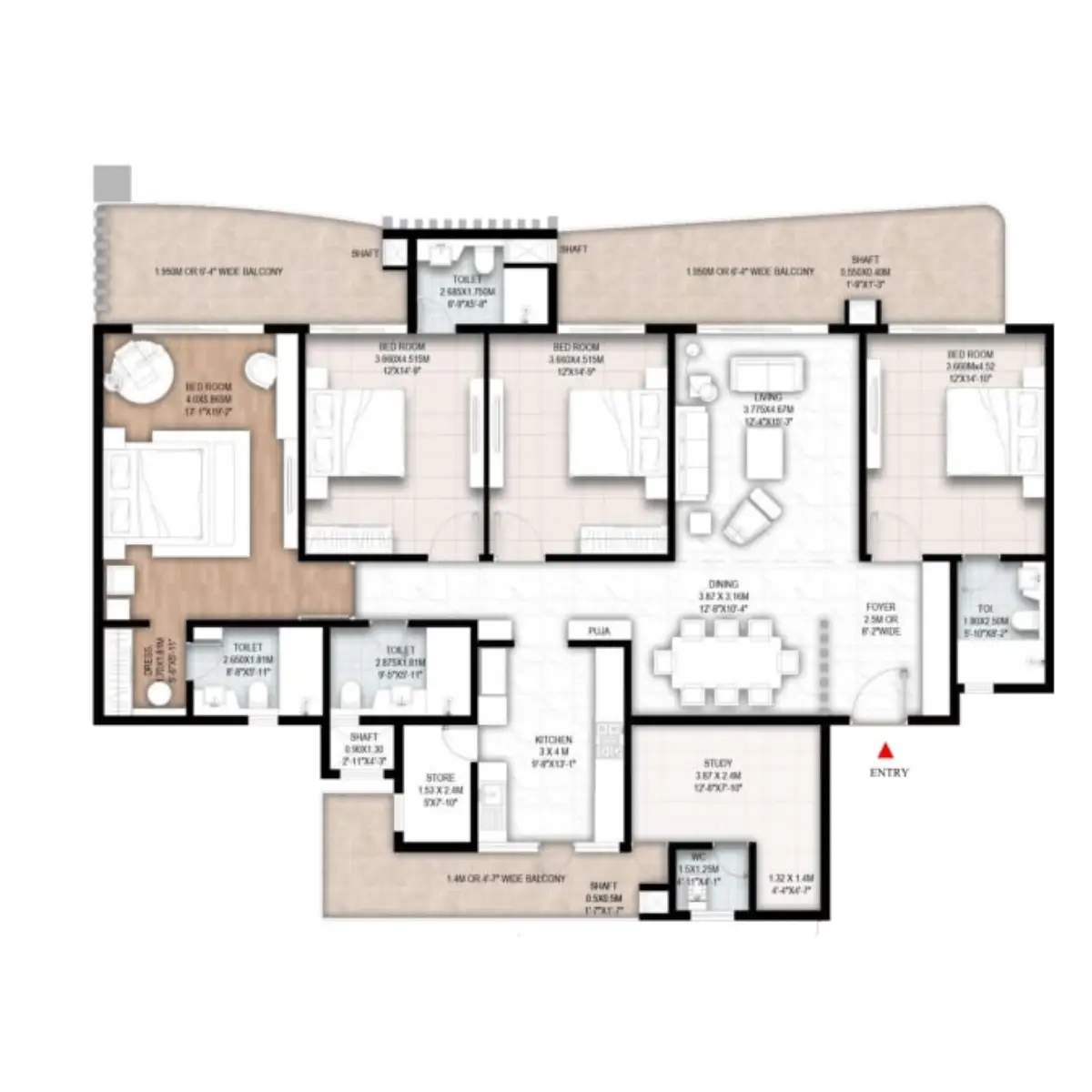 4BHK + STUDY (3360 SQ.FT.)