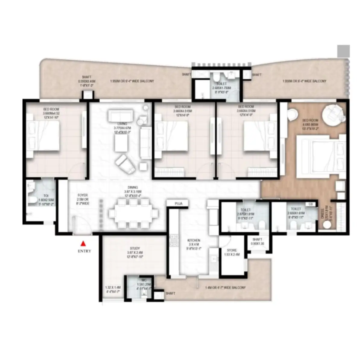 ICONIC 4BHK + STUDY (3862 SQ.FT.)