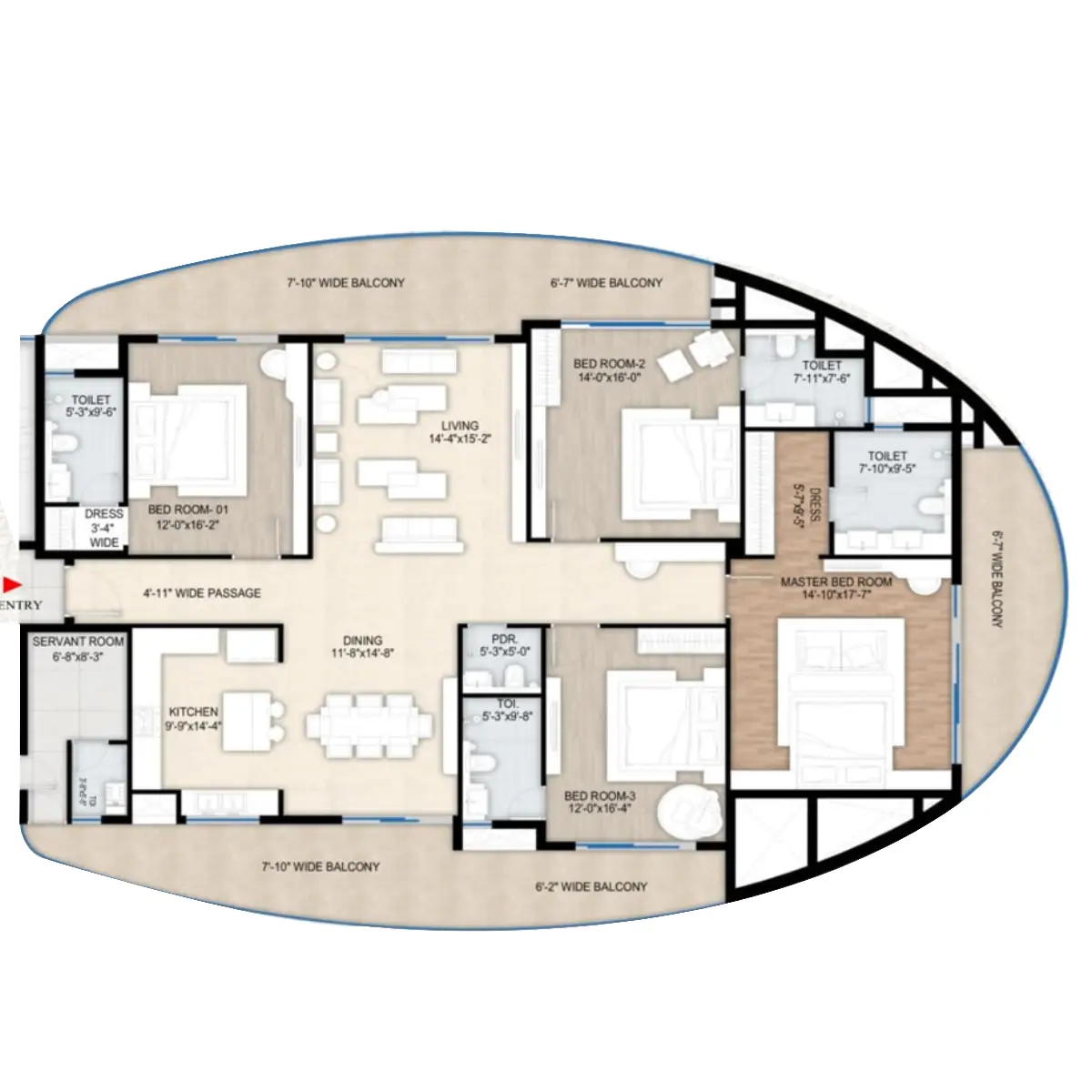 - Iconic Tower Size: 4BHK+Study-3862 Sqft.